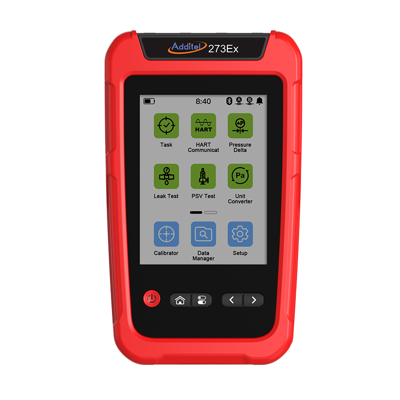 The Additel 273Ex (Intrinsically Safe) is a portable pressure calibrator that redefines field testing in explosive environments. Featuring a vibrant color touchscreen and a smartphone-inspired interface, it integrates quick test tasks and optional HART communication to significantly improve calibration efficiency.