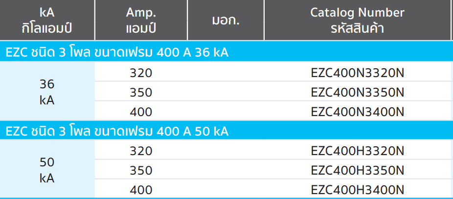 Molded-case circuit breakers from 15 to 400 A, featuring fixed settings.
